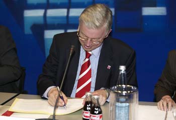 In einer Podiumsdiskussion stellte Ministerpräsident Koch gemeinsam mit Umweltminister Dietzel, Spitzenvertretern der Hessischen Wirtschaft und den Kommunalen Spitzenverbänden die Vorteile der kooperativen Zusammenarbeit dar und diskutierte über zukünftige Perspektiven. Er betonte, dass das Bündnis für nachhaltige Standortpolitik ein wichtiges Instrument für die gegenwärtigen wirtschaftlichen und gesellschaftlichen Herausforderungen ist. Wichtig sei, dass sich alle Vertragspartner ihrer Gesamtverantwortung bewusst sind, sich aktiv einbringen und konkret handeln. Die Ergebnisse der Kooperation und die Entwicklung der Zusammenarbeit werden regelmäßig bilanziert und der Öffentlichkeit vorgestellt.